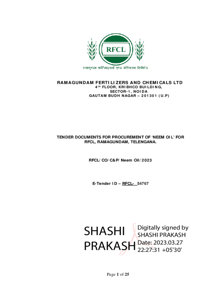 Fillable Online Ramagundam Fertilizers and Chemicals Limited. (RFCL ...