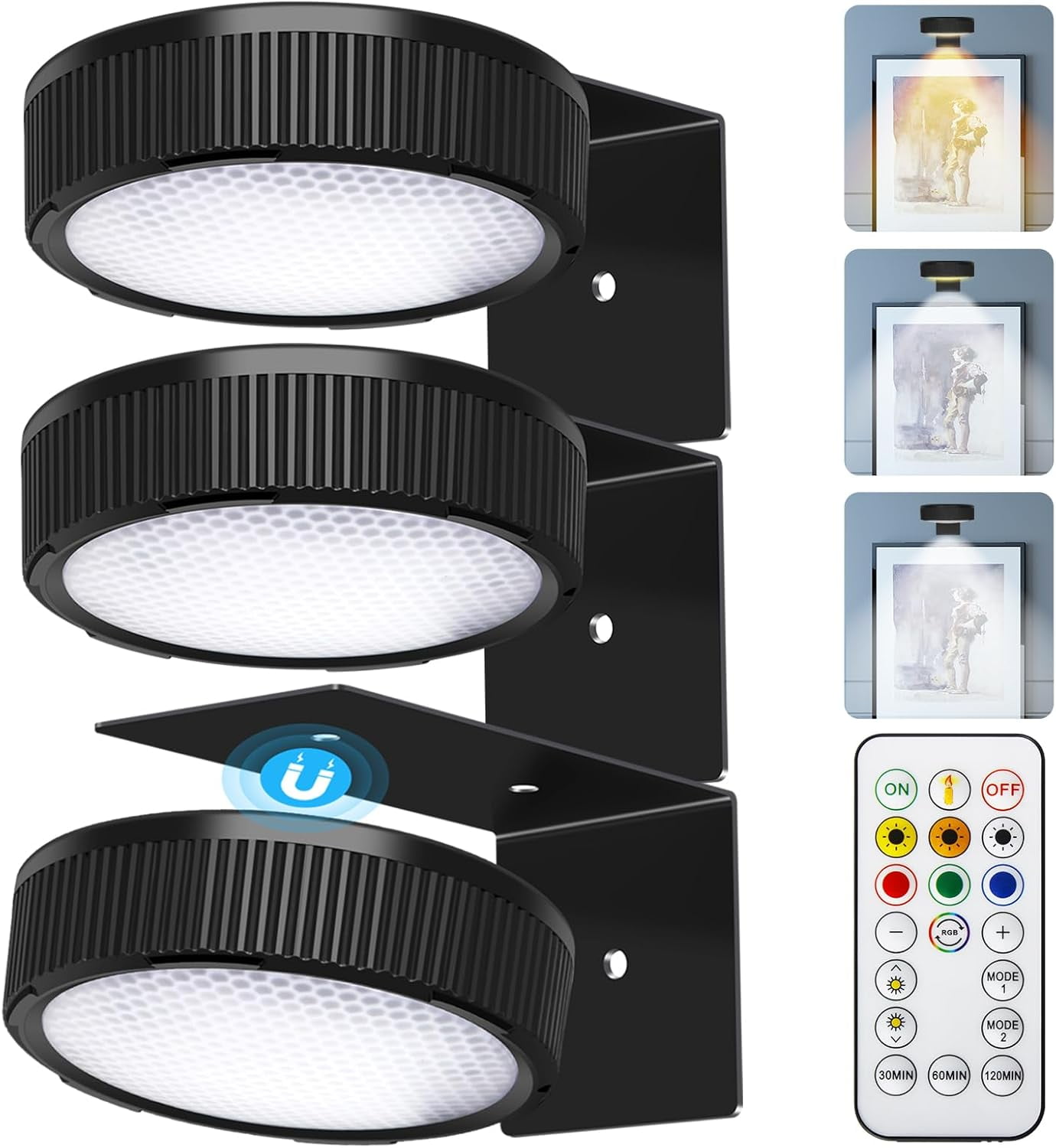 2-Pack 360° Indoor RGB Wall Light, Remote Control Battery Operated, 3 ...