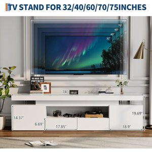 Ebern Designs High Gloss LED TV Stand with RGB Lights & Power Outlets ...