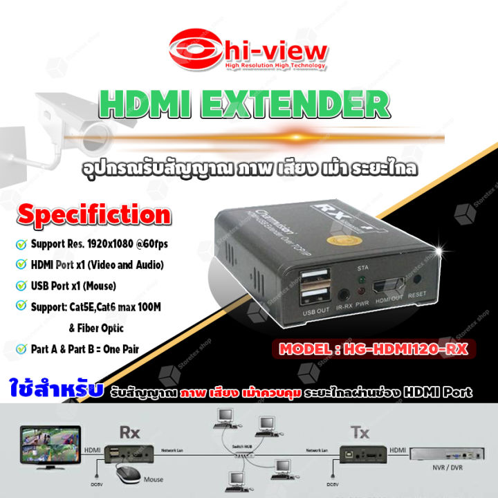 Hi-View HDMI EXTENDER อุปกรณ์รับสัญญาณ ภาพ เสียง เม้า ระยะไกล รุ่น HG ...