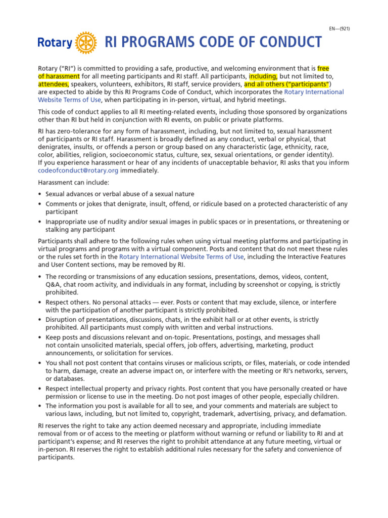 RI Code of Conduct - Harassment Policy | PDF | Harassment | Privacy