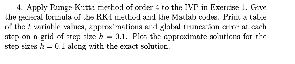 4 Apply Runge-Kutta method of order 4 to the IVP in Exercise 1. Give ...