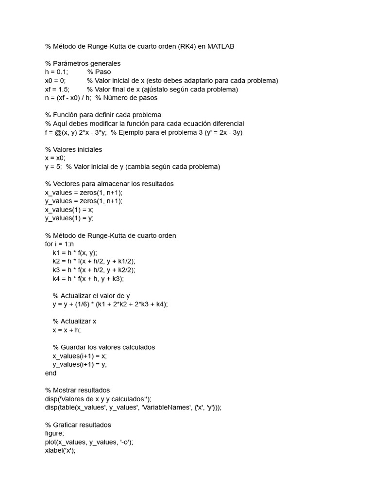 RK4 en MATLAB: Solución de ODEs | PDF | Ecuaciones diferenciales ...