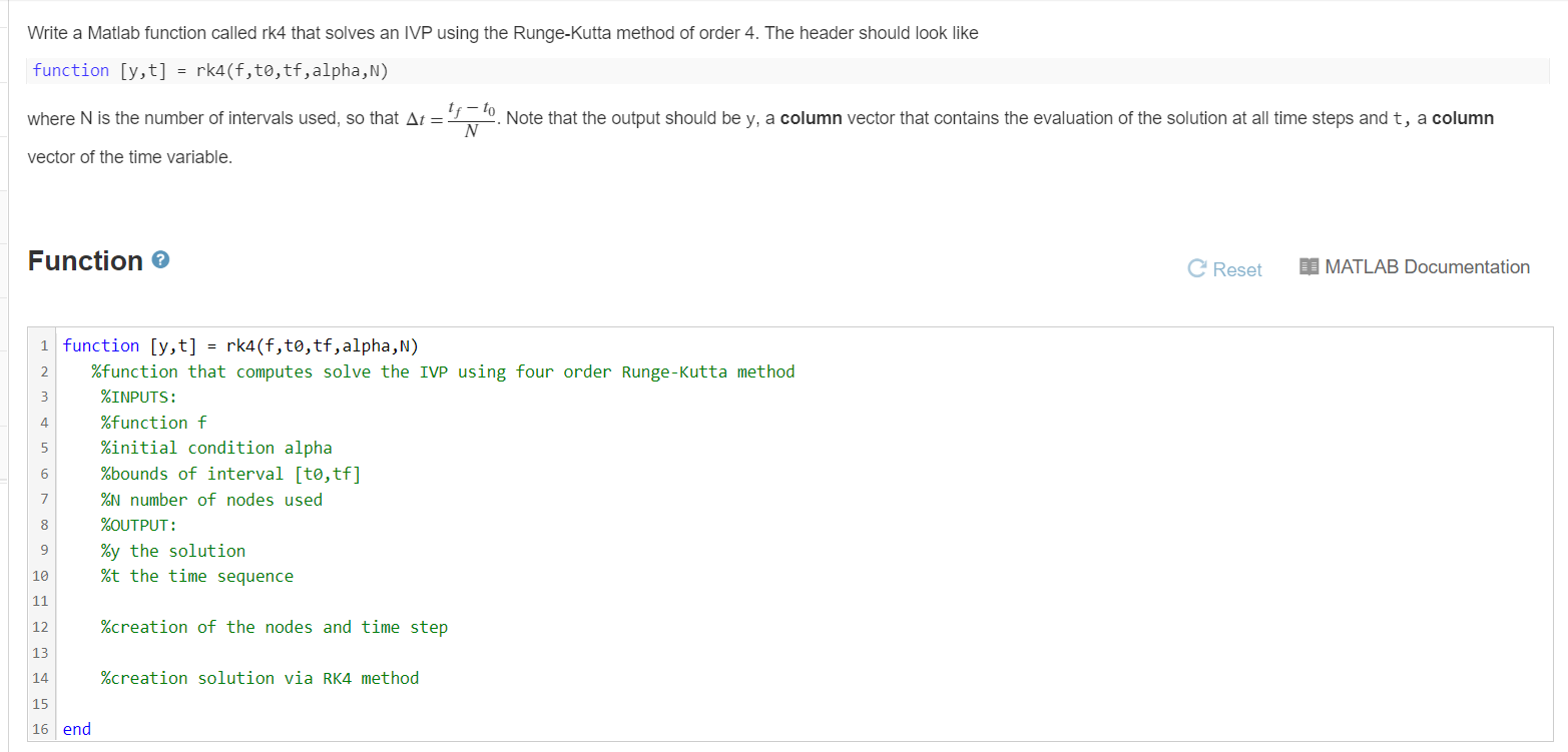 Solved Write a Matlab function called rk4 that solves an IVP | Chegg.com