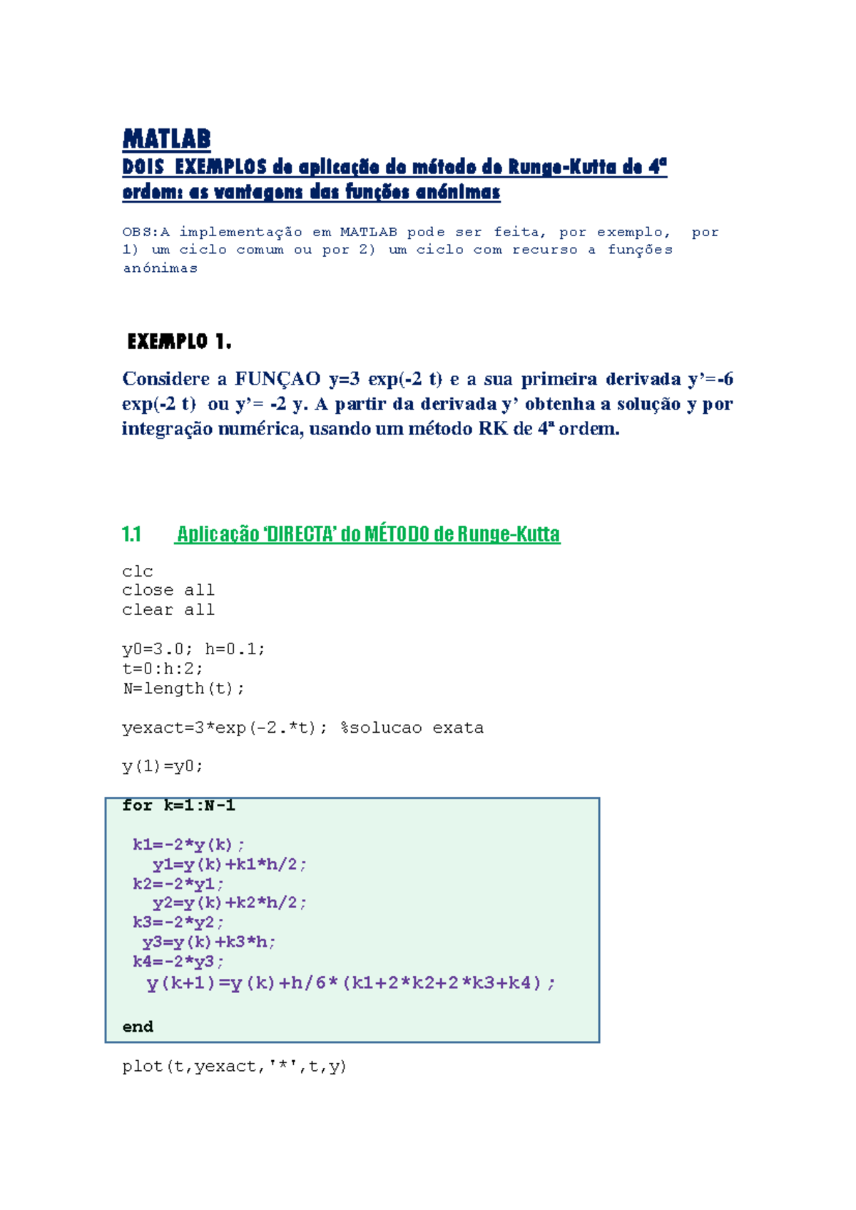 Exemplos Práticos do Método RK4 em MATLAB: Aplicações com Funções ...