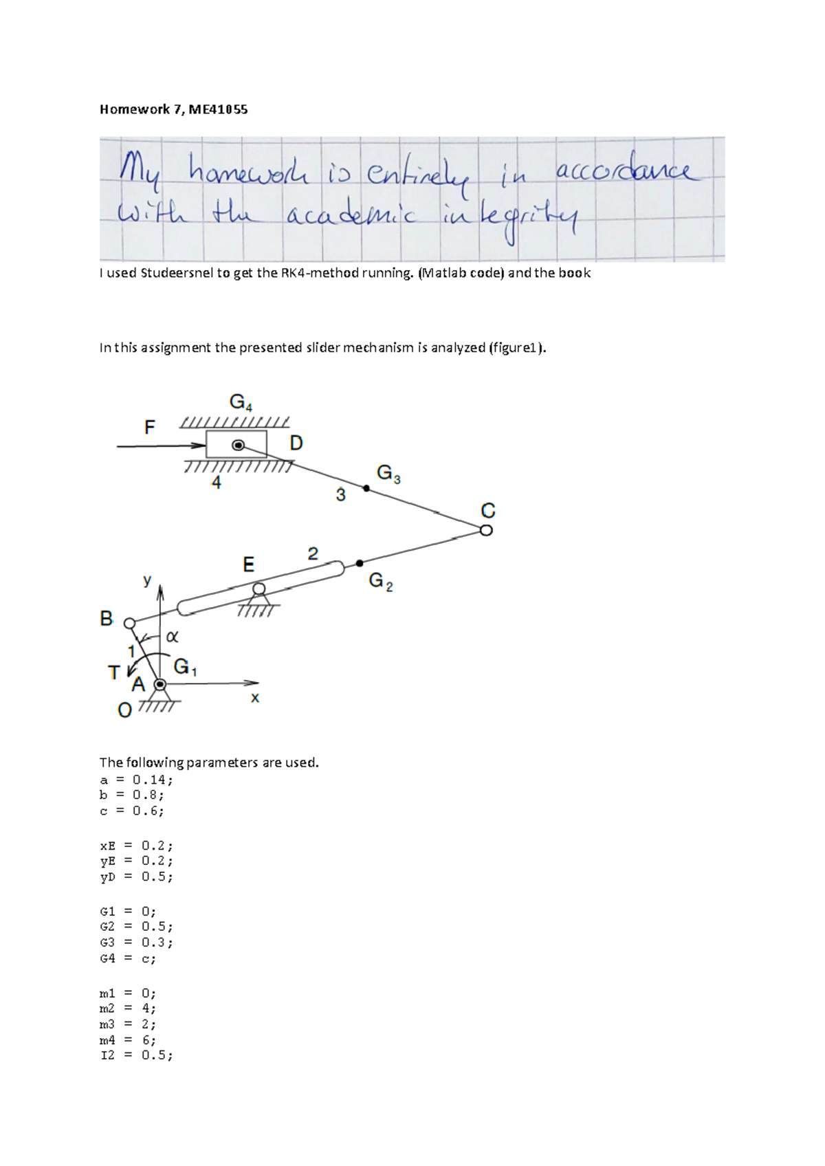 Homework 7 - ME: MATLAB RK4 Method Analysis with Slider Mechanism ...