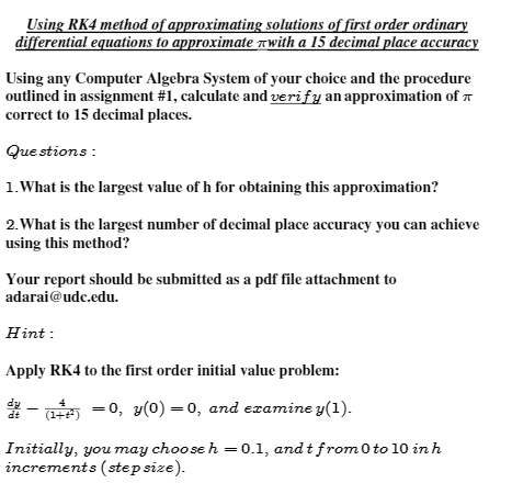 Solved Use technology, and the RK4 Method to approximate | Chegg.com