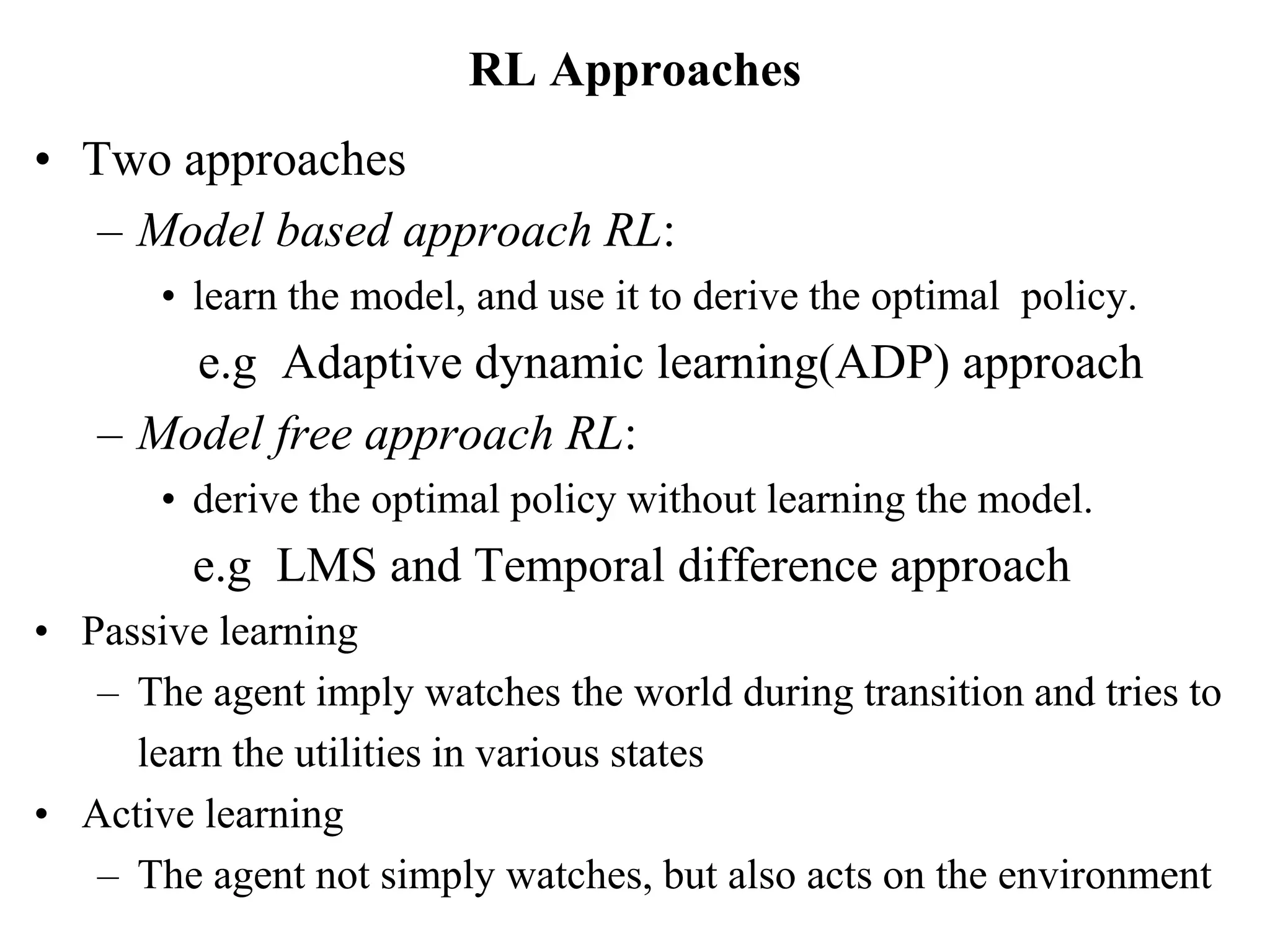 Different Reinforcement Learning (RL) approaches | Download Scientific ...