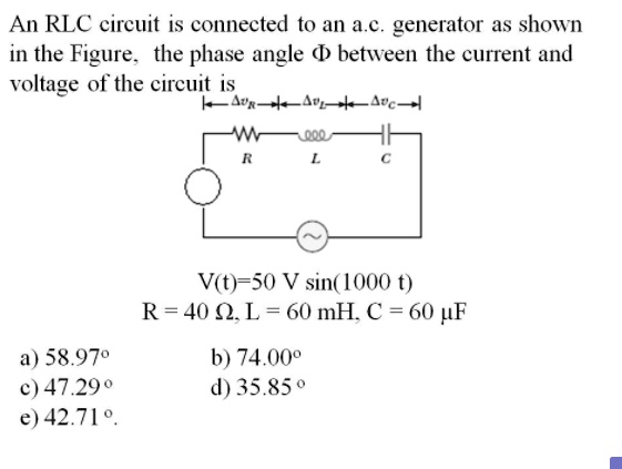 SOLVED: An RLC circuit is driven by an AC generator as shown in the ...