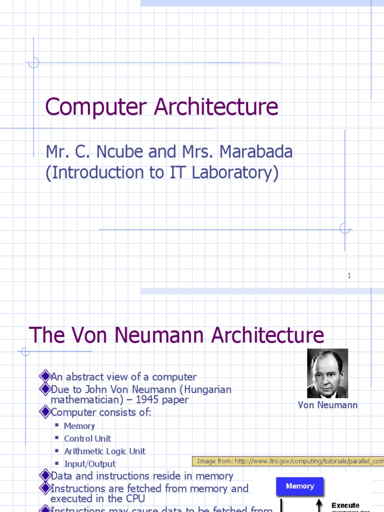 Computer Architecture: Mr. C. Ncube and Mrs. Marabada (Introduction To ...
