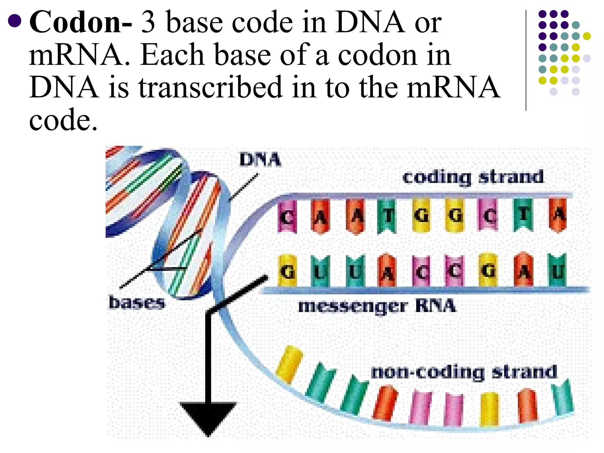 Genetic code. The three bases of an mRNA codon. Amino Acid Sequence ...