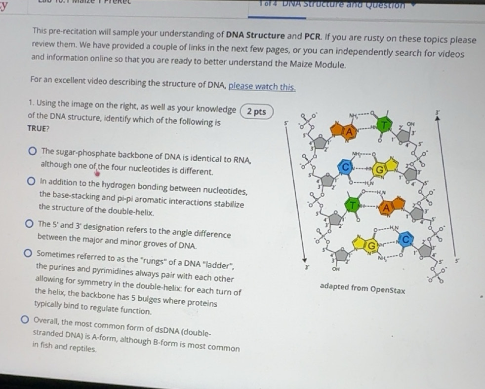 Solved: 1 8f4 DNA Structure and Question This pre-recitation will ...