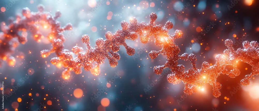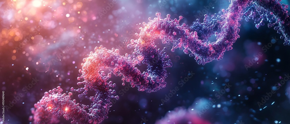 A close-up depiction of RNA strands in a digital model, showing the ...