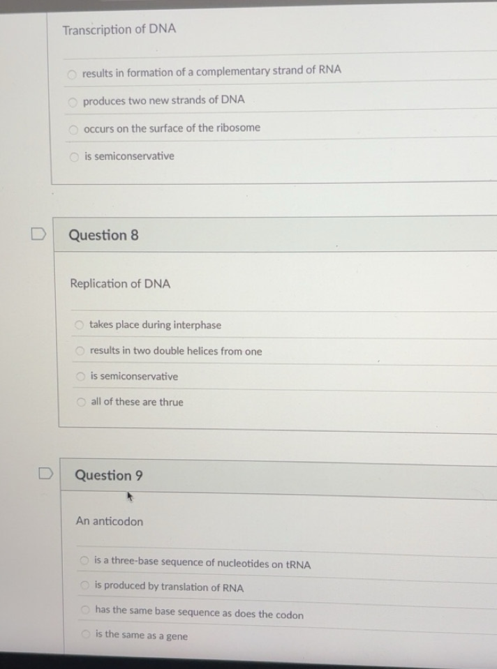 Solved: Transcription of DNA results in formation of a complementary ...