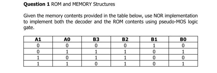 Solved Question 1 ROM and MEMORY Structures Given the memory | Chegg.com