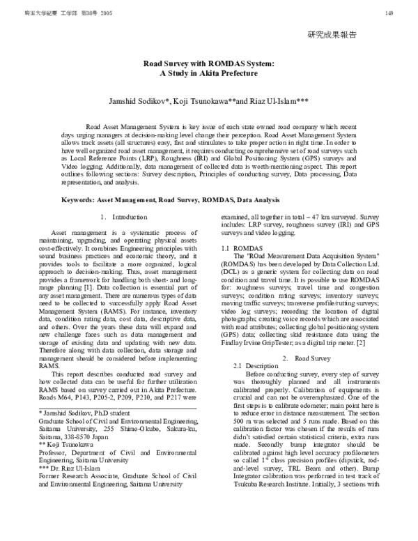 (PDF) Road Survey with ROMDAS System : A Study in Akita Prefecture
