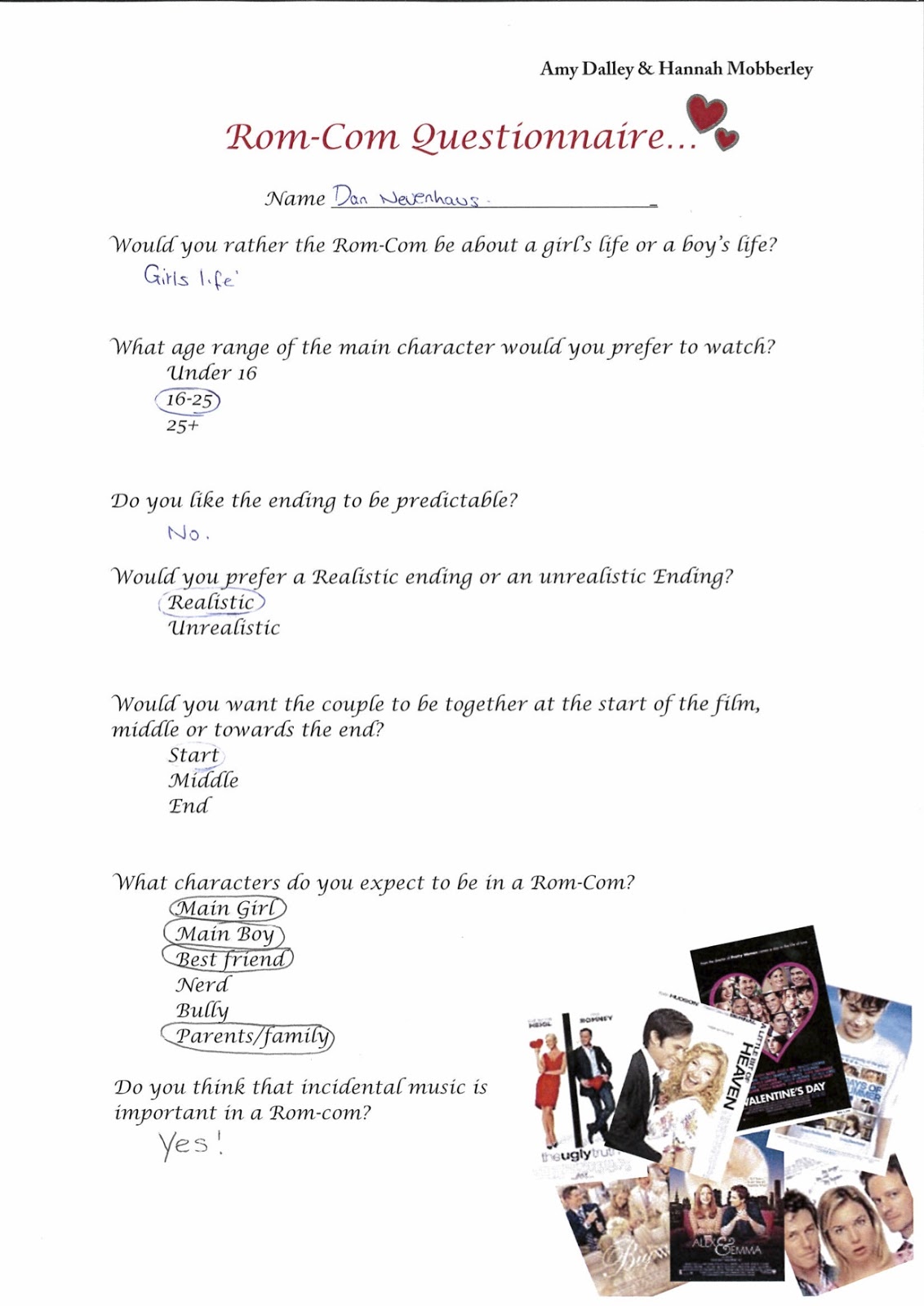 Quick questionnaire on rom coms, please complete if you have some spare ...