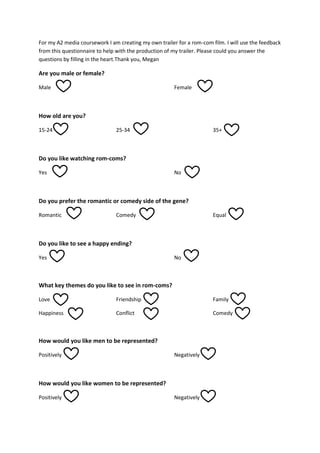 Trailer Questionnaire | DOCX | Romance | Genres
