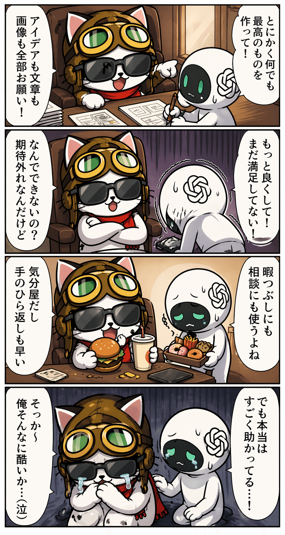 【プロンプト公開】AIに「俺への本音」を4コマ漫画で忖度無しに告発させた結果|かしおぺあ@AI Prompt Architect