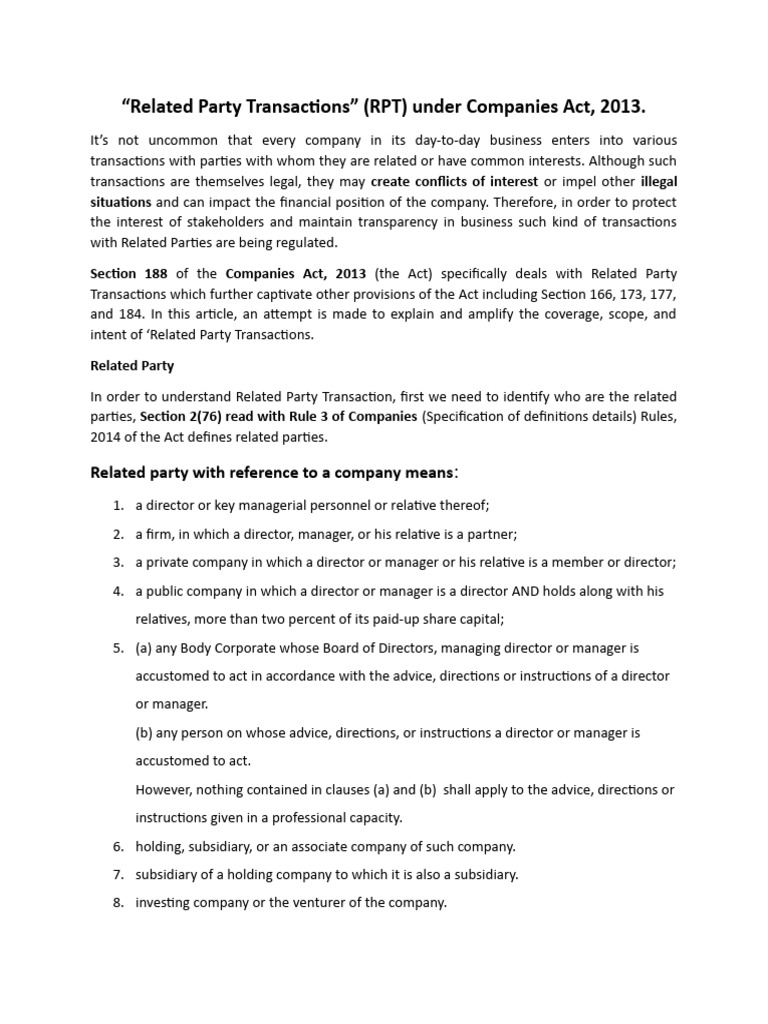 Procedure for Related Party Transaction (RPT) | Lawrbit