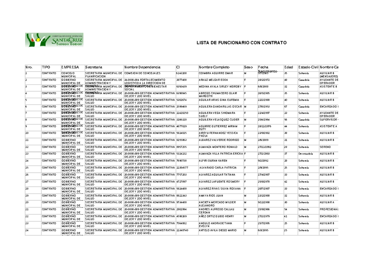 LISTA DE FUNCIONARIOS CON CONTRATO - GOBIERNO MUNICIPAL SANTA CRUZ ...