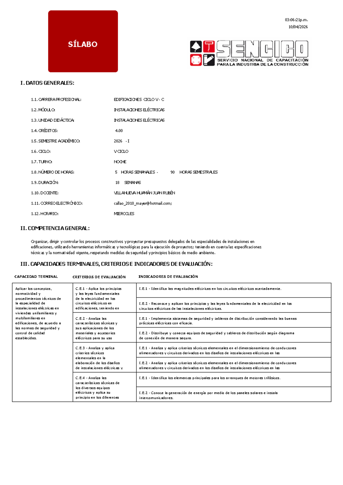 Sílabo del Módulo de Instalaciones Eléctricas - Edificaciones 2026-I ...