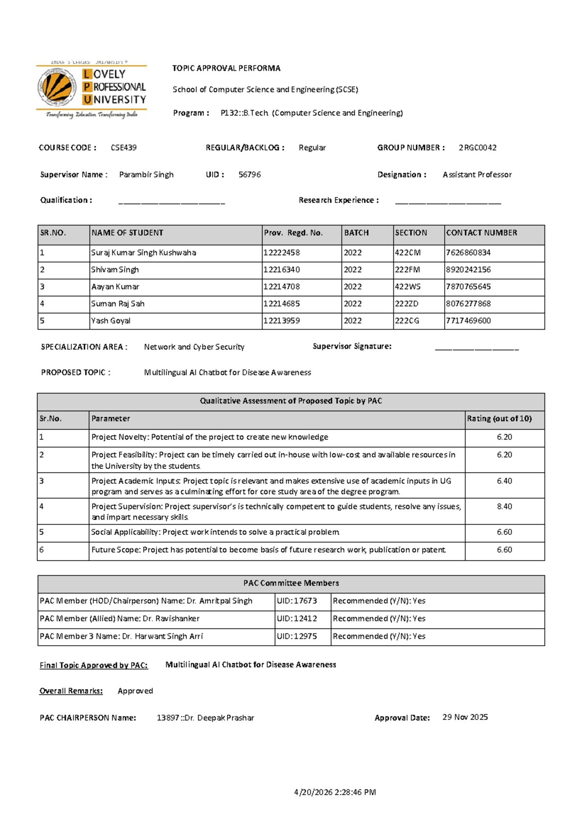 CSE439 Topic Approval Performa: Multilingual AI Chatbot Project - Studocu