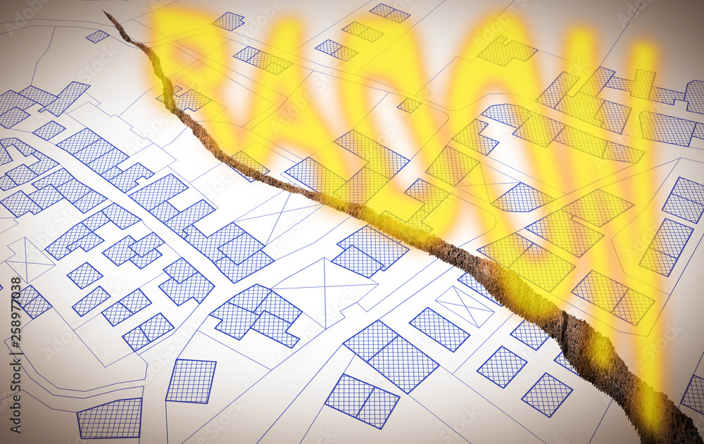 A cracked city map with radon gas escaping from underground - radon gas ...