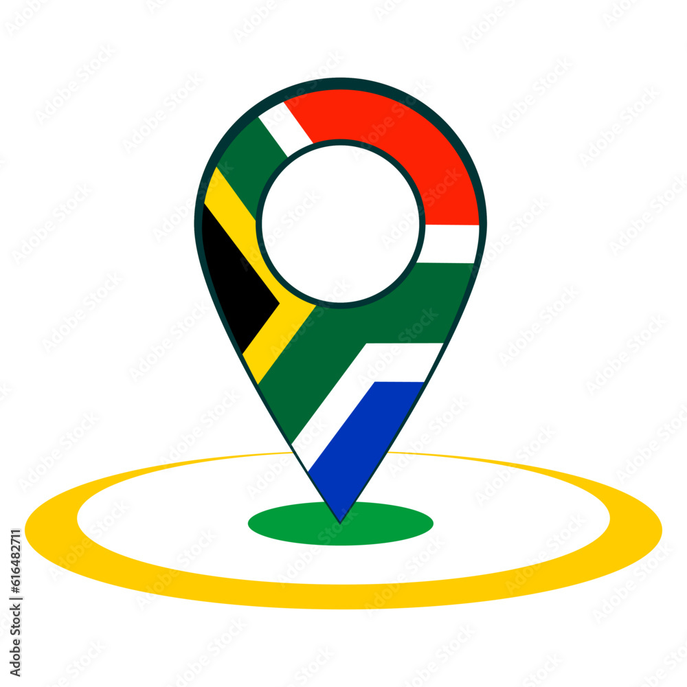 Vetor de Pinpoint with texture of flag of South Africa, map, location ...