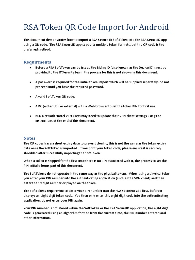 RSA Token QR Code Import For Android | Download Free PDF | Qr Code ...