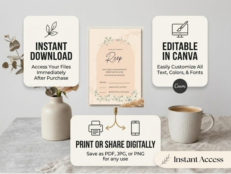 Editable Printable Invite ,RSVP Details , Wedding Template , Neutral ...