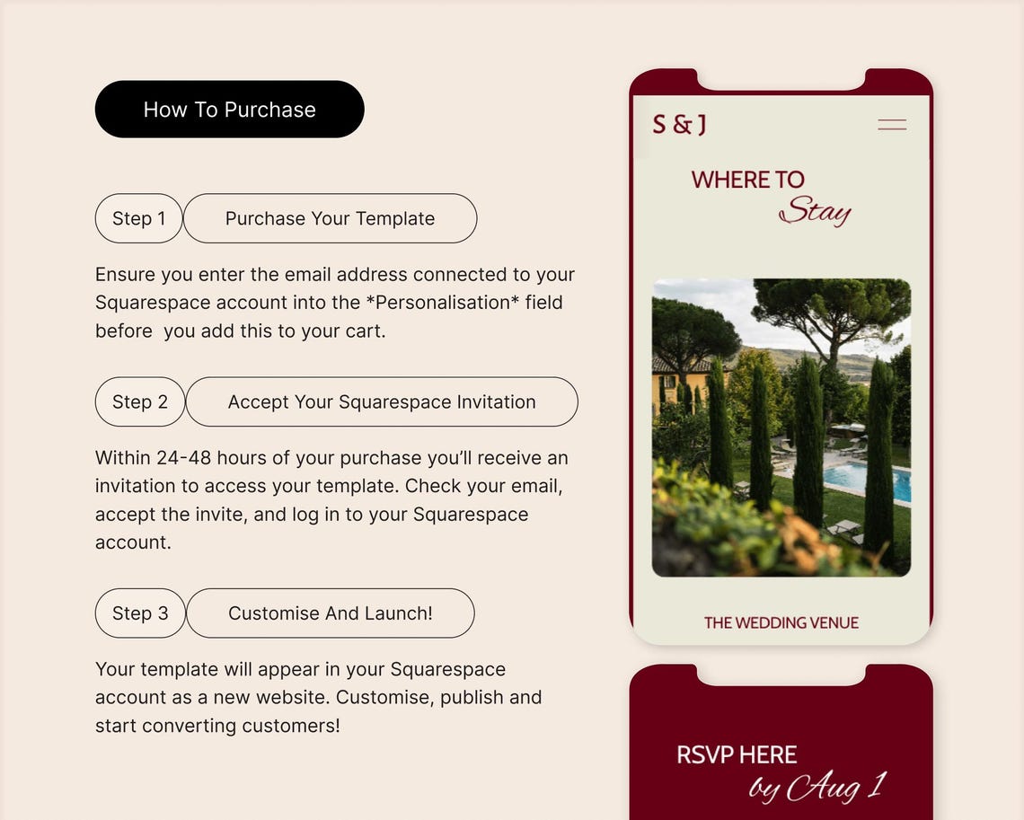 Wedding RSVP & Digital Invitation Squarespace Website Template - Etsy