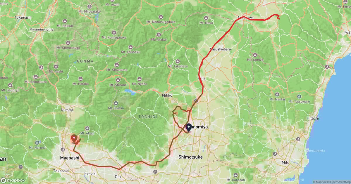 宇都宮市 to 前橋市 Hiking Route - Bear Safety Map & 30 Incidents | Kumamap