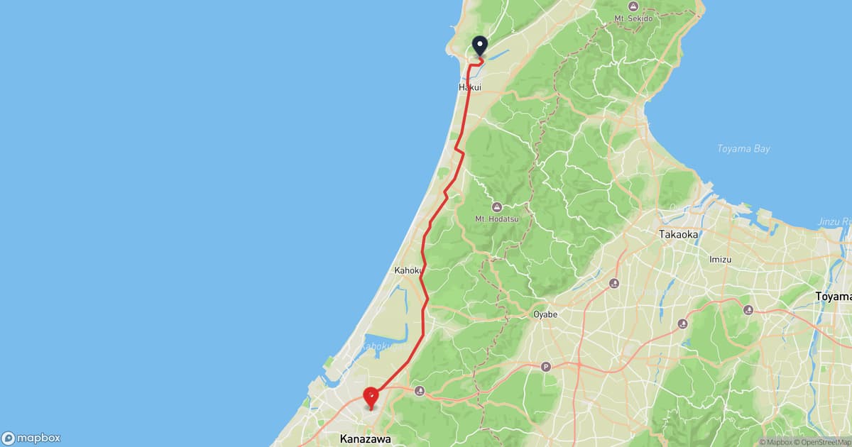 羽咋市 to 金澤市 Hiking Route - Bear Safety Map & 1 Incidents | Kumamap