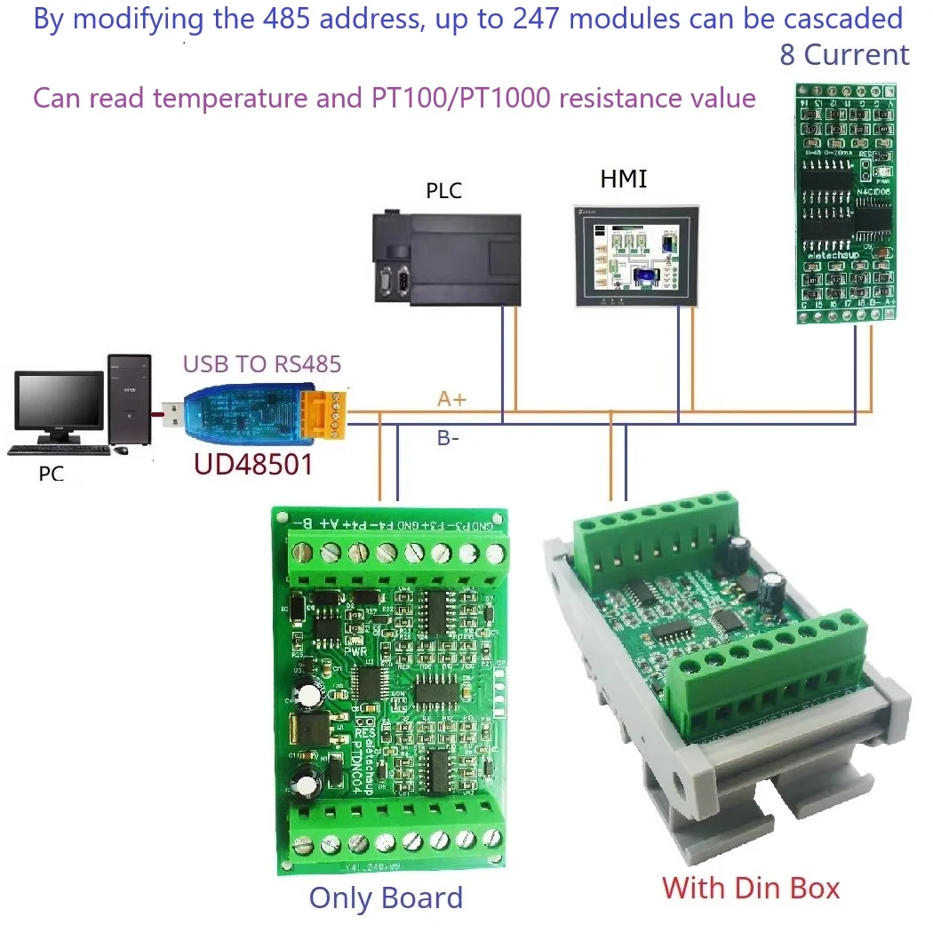 2/3-wire PT100 to RS485 Converter RTD ADC Module RTD PT100 to Modbus ...