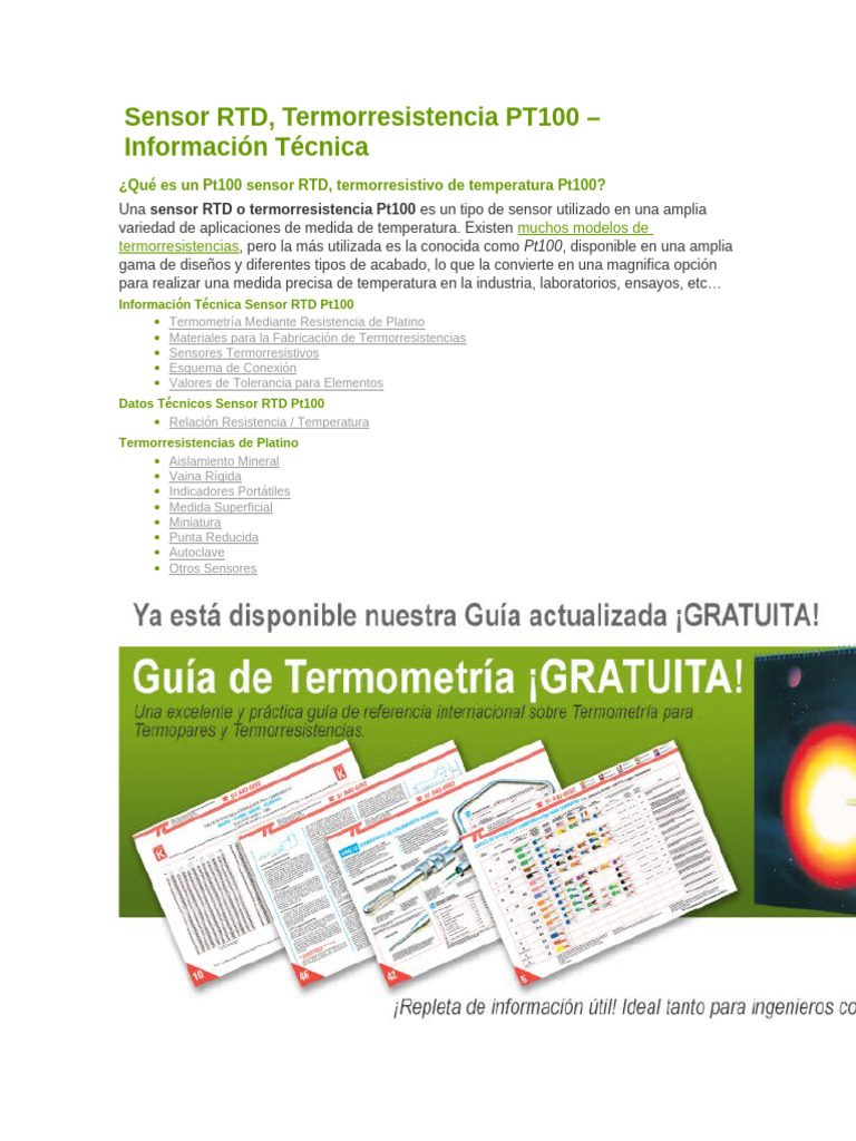 Sensor RTD Pt100: Guía Técnica Completa | PDF | Resistor | Sensor