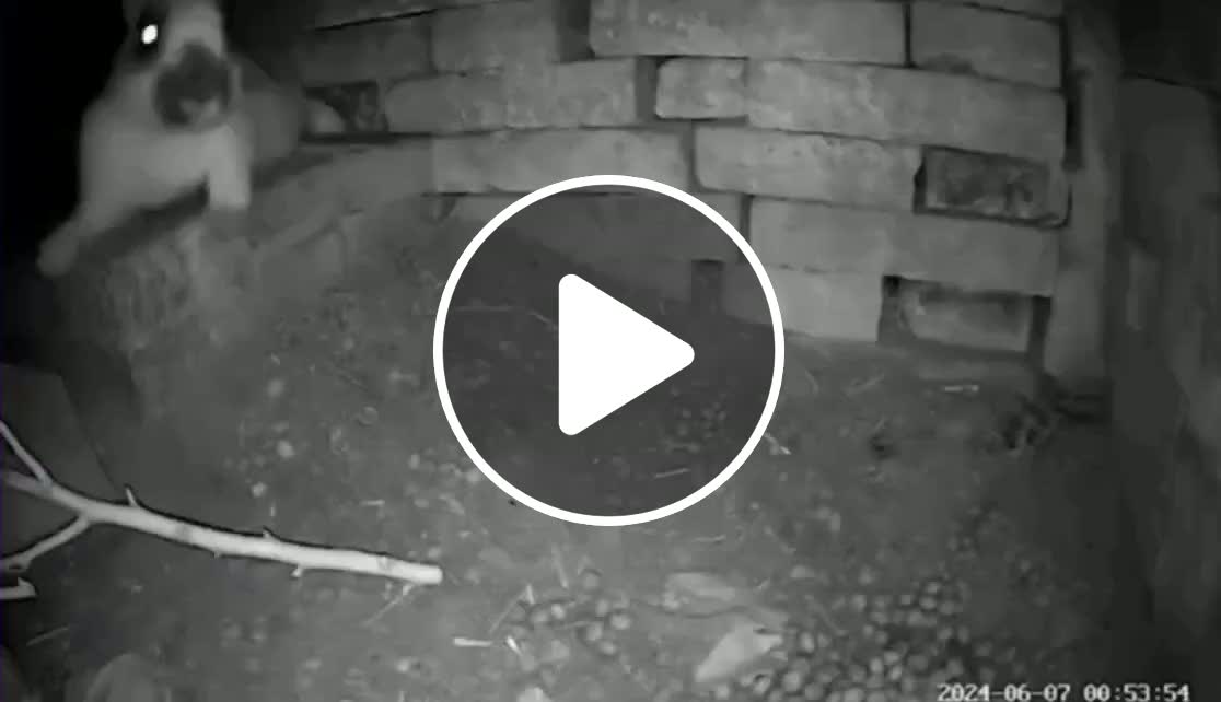 Mother rabbit digs her babies out from their hiding place to feed them ...