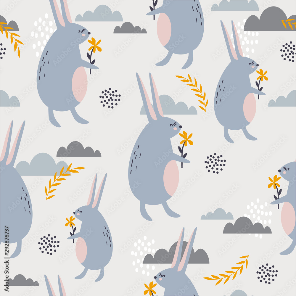 Seamless pattern with rabbits. Graphic design for paper, textile print ...