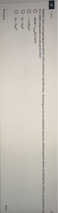 Solved 28 1 point Rabbits have overlapping generations with | Chegg.com