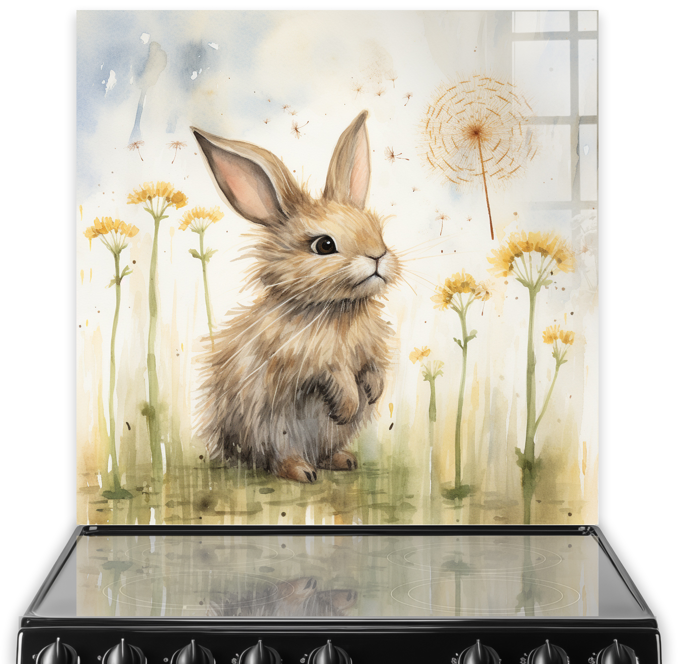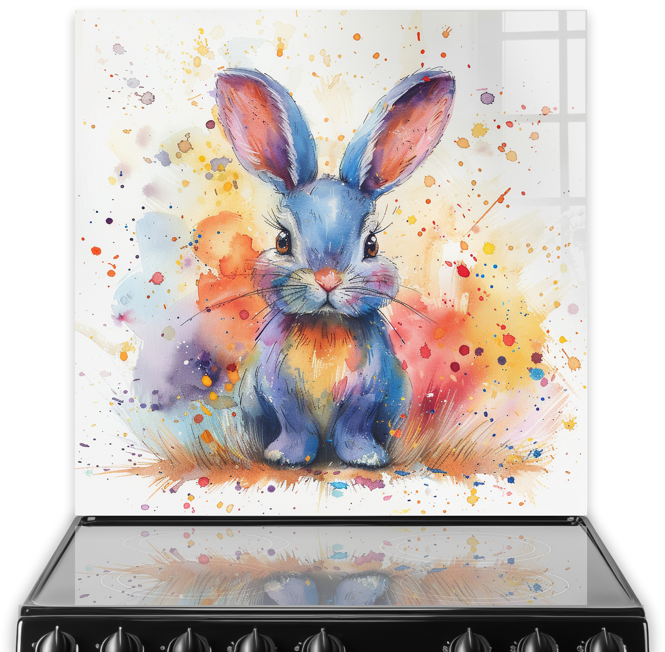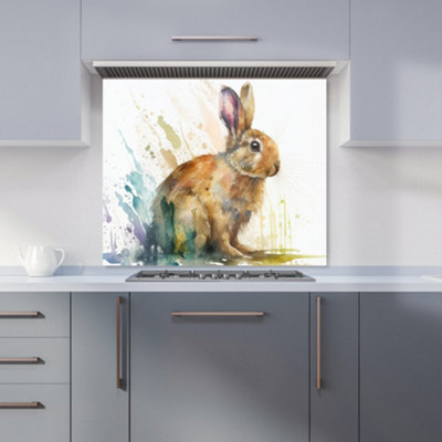 Rabbit Splash Watercolour Premium Glass Kitchen Splashback W600mm x H750mm