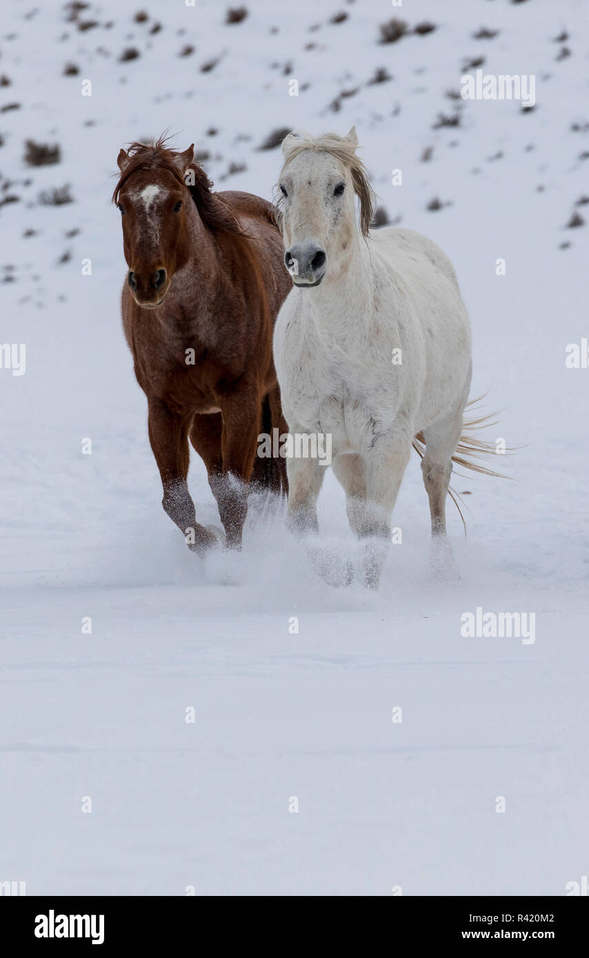 Horses running through snow, Hideout Ranch, Shell, Wyoming. (MR, PR ...