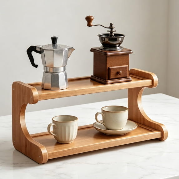 Bcylexb Natural Wood 2-Tier Coffee Storage Shelf, Lightweight Desktop ...