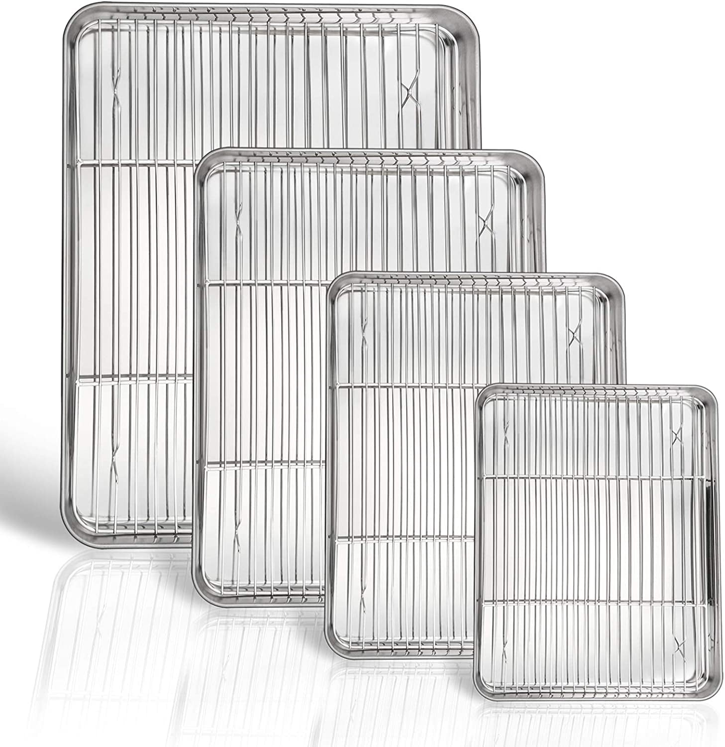 16 + 12.5 + 10.4 + 9 Inch Baking Sheet and Rack Set, 8Pcs Stainless ...