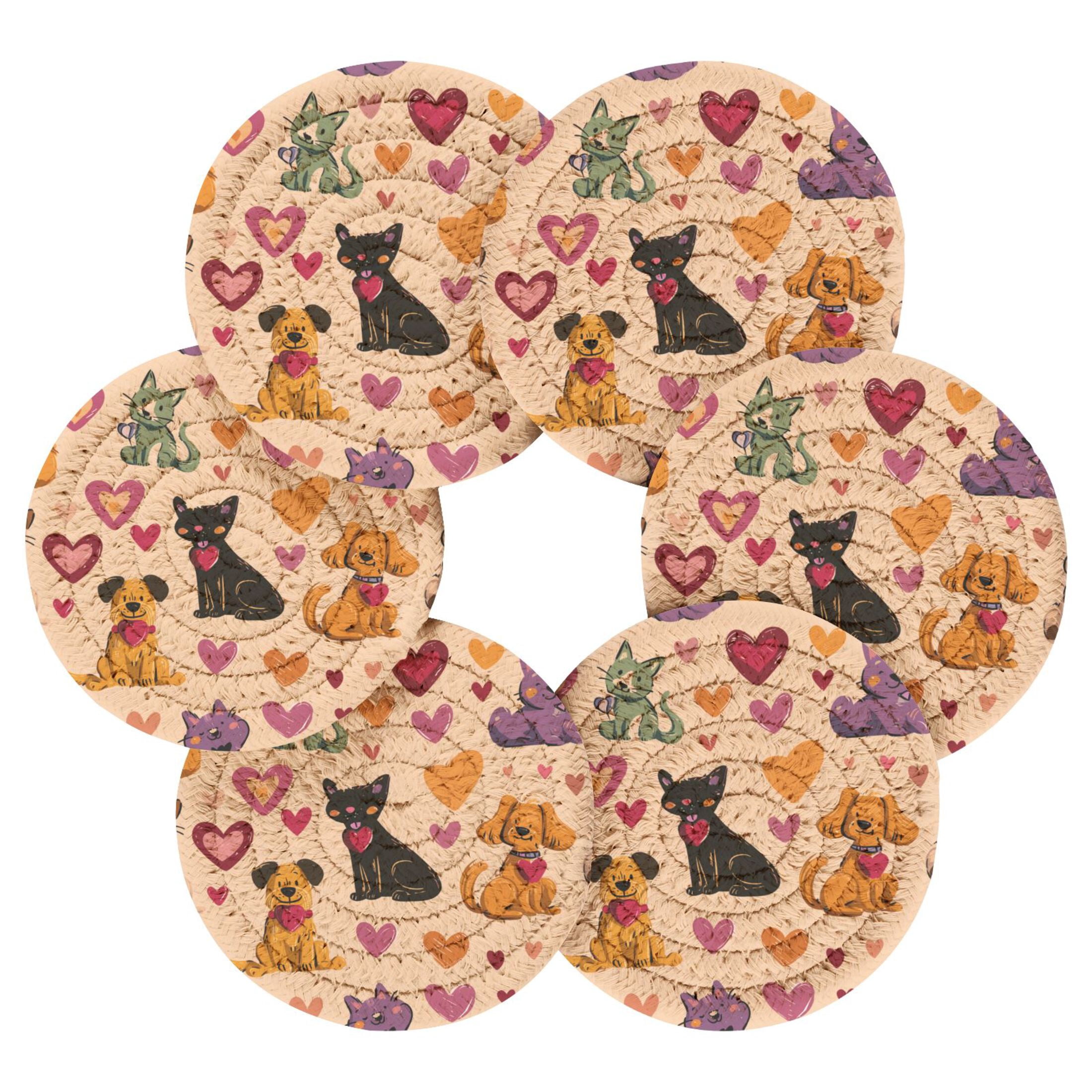 6PCs Round Coasters Set Heat Resistant Washable Kitchen Table ...