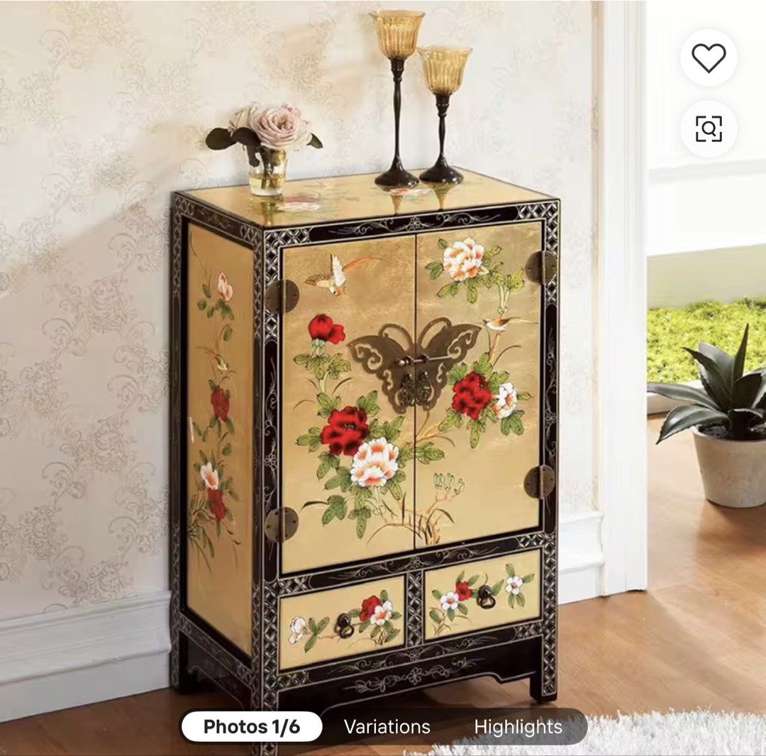 Japanese Style Golden Lacquer Cabinet, Furniture & Home Living ...