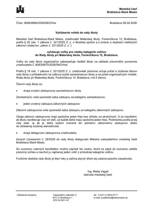 Verejné vyhlášky - Vyhlásenie volieb do rád škôl pri materských školách ...