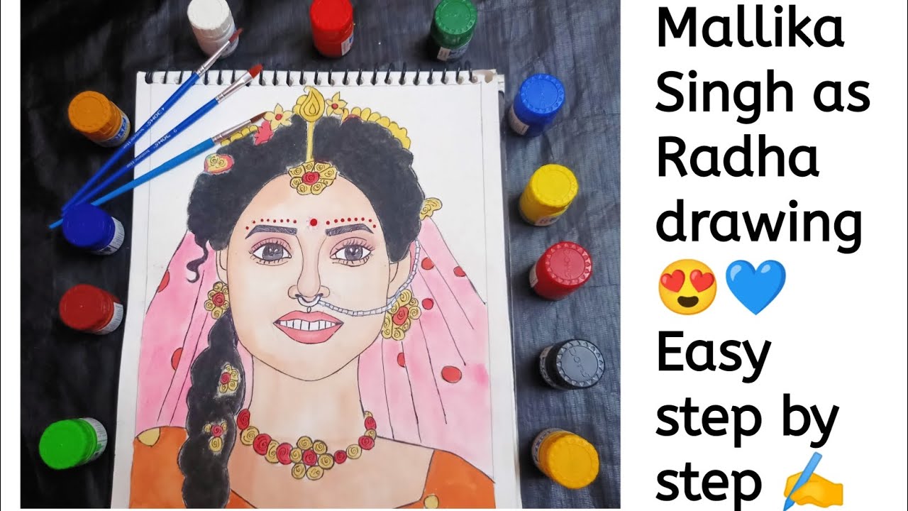 How to Draw Mallika Singh as Radha || Shri Radha drawing with DOMS ...
