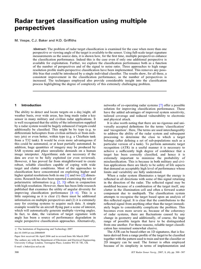 Radar Target Classification Using Multiple Perspectives | PDF ...