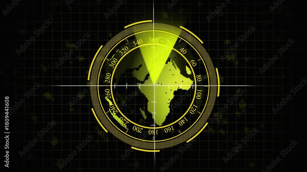Yellow Radar Display with Pix elated Earth, Gradients, and Angle ...