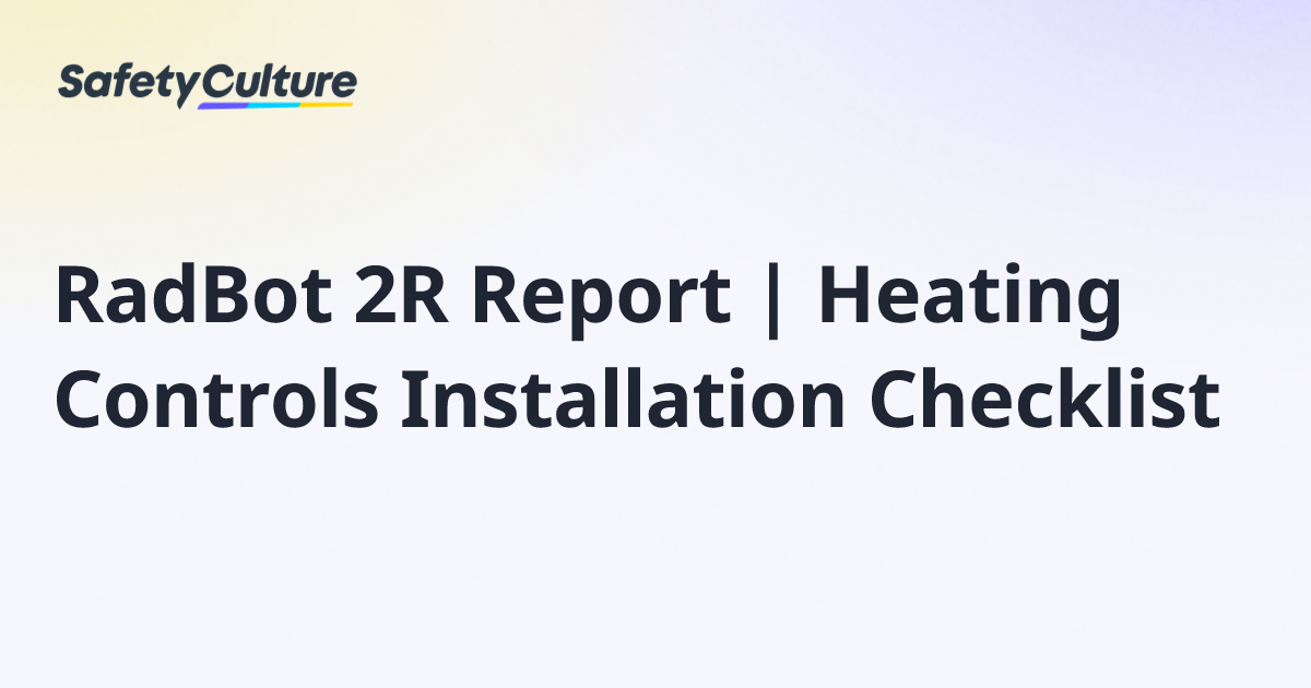 RadBot 2R Report | Heating Controls Installation Checklist | Free Template